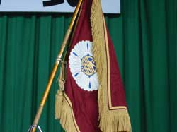 これはもう説明する必要もないでしょう。皆さん一度は必ず自分達の学校の校旗を目にしたはず。覚えていますか?正絹に西陣織の総刺繍が施された豪華絢爛な旗はいかがでしょうか・・・。最高級品になれば、旗棒や竿頭なども全然違ったものになりますヨ。お届けするまでには2ヶ月くらいかかりますが、お待ちいただいてもその分のものを提供致します。
